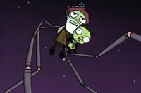 Zim rears up on two mechanical legs and prepares to bring down through the Doctor like a praying mantis.